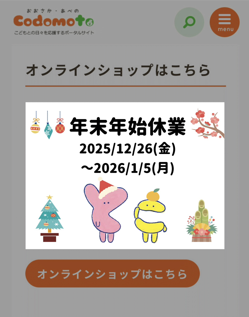 オンラインショップ年末年始休業のお知らせ